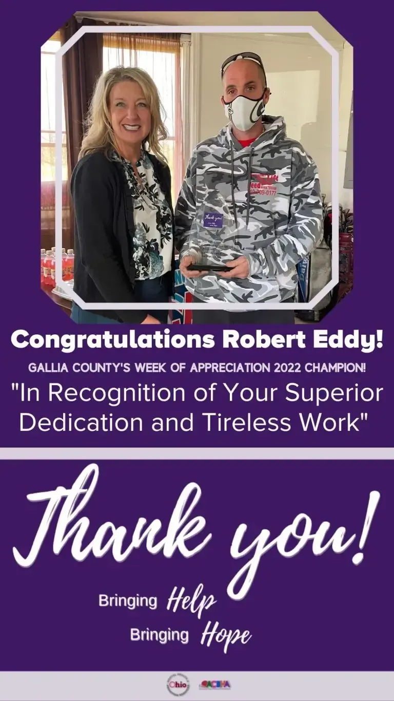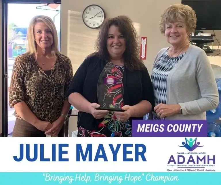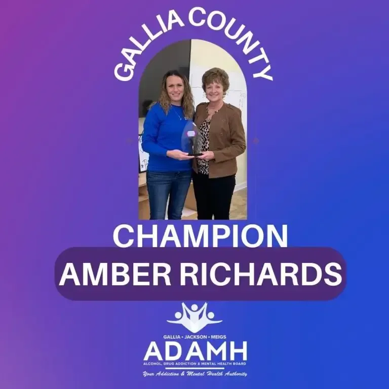 ADAMH Board “Week of Appreciation” Gallia County Champion award presented to Amber Richards.