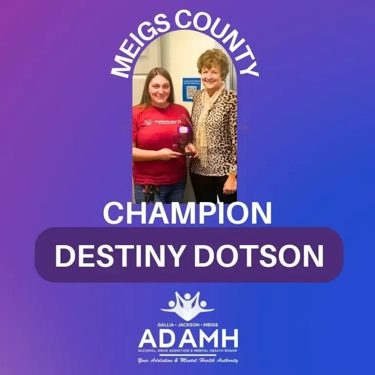 ADAMH Board “Week of Appreciation” Meigs County Champion award presented to Destiny Dotson.